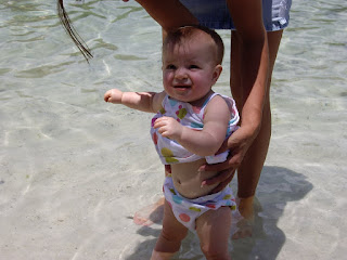 The girls had an awesome time playing with their friends. There was definitely a house full of babies. My Dad called the downstairs living room "The Romper Room"! Two sets of identical twins, three one year old's and a 3 month old!!! The entire time they were playing the girls favorite toy was two empty water bottles. Imagine that. All the toys in the world and they go for the water bottles. After playing for quite awhile lunch was ready so we took shifts and got some food. Then, it was time to change into our bathing suits and go for a dip in the pool.